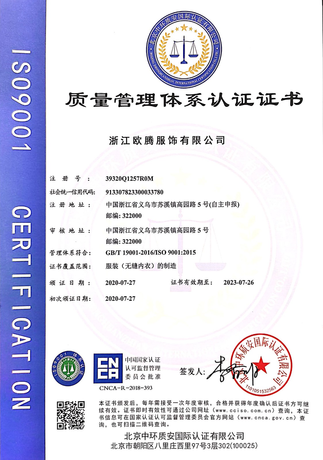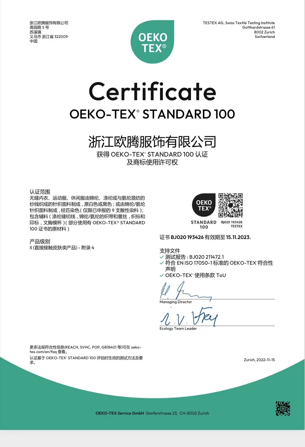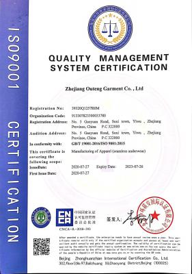 浙江歐騰服飾有限公司位于世界小商品之都-義烏。創(chuàng)立于2015年,是一家專業(yè)生產(chǎn)無縫針織運(yùn)動(dòng)服飾和內(nèi)衣的工貿(mào)一體企業(yè),擁有自主出口權(quán)。 工廠的占地面積約16000平方米 ,引進(jìn)了大型圣東尼、高騰等多種先進(jìn)的制衣設(shè)備300余臺(tái)。月產(chǎn)能可達(dá)90萬件。 歐騰服飾每年投入近百萬資金打樣開發(fā)新產(chǎn)品,有著一支高素質(zhì)設(shè)計(jì)、技術(shù)員工隊(duì)伍。工廠先后通過了ISO 9001質(zhì)量管理體系認(rèn)證、BSCI認(rèn)證、GRS認(rèn)證、OEKO-TEX國際生態(tài)紡織品認(rèn)證等多項(xiàng)專利檢測(cè)報(bào)告??商峁㎡EM&ODM服務(wù)。歐騰服飾以一套完整、科學(xué)的質(zhì)量管理體系,生產(chǎn)的服裝從原材料紗線到成衣,質(zhì)量完全能夠滿足國內(nèi)、國際質(zhì)量要求。獲得了客戶一致好評(píng)。工廠先后獲得省科技型企業(yè)、國家高新企業(yè)、義烏市誠信講信用單位、規(guī)上企業(yè)、信用AAA級(jí)等榮譽(yù)。